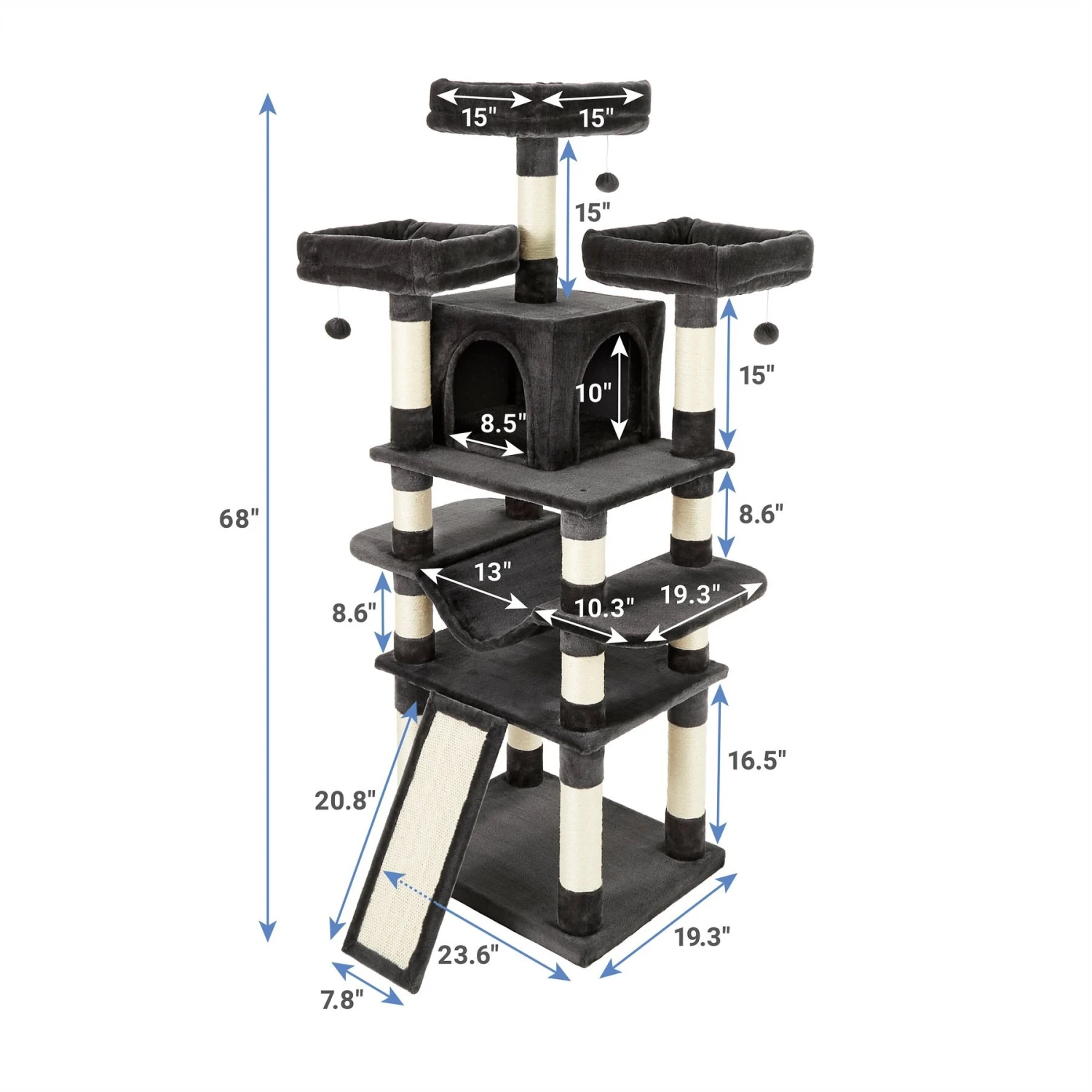 - Cats love all the different heights to climb up to, as well as scratching on the sisal rope to keep nails healthy and get in a good stretch.
